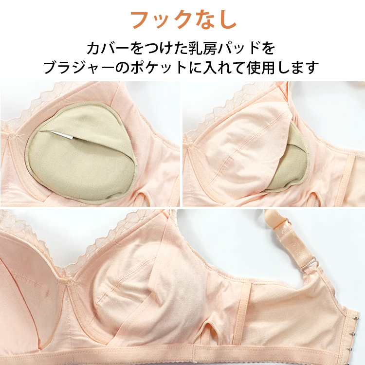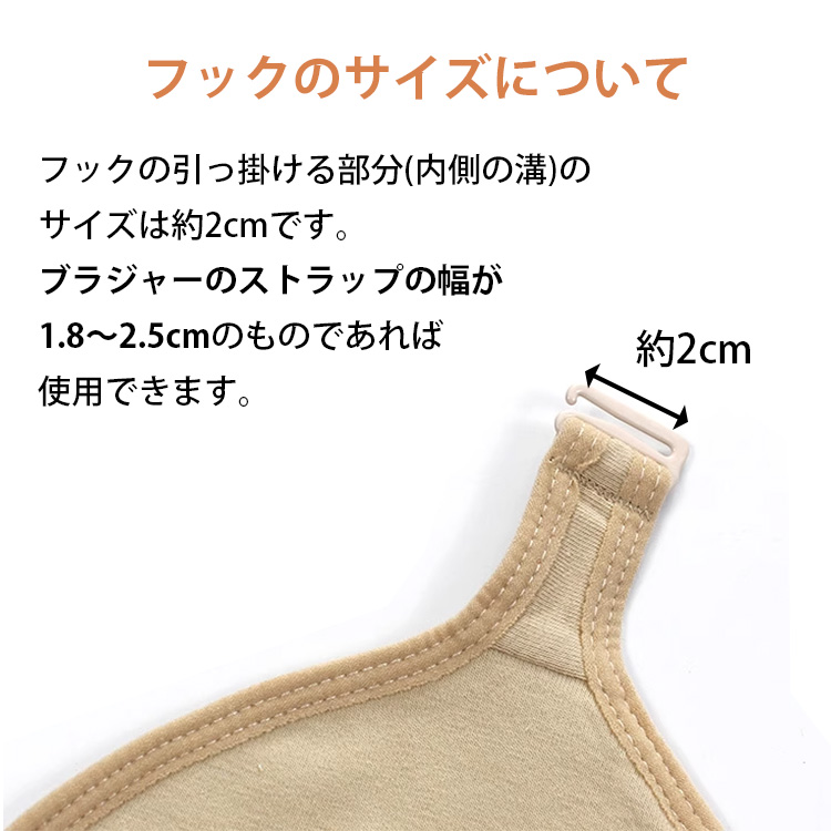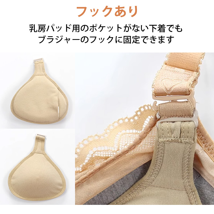 パッド用ポケットがない下着でも固定できる便利なタイプ。ブラストラップ(幅1.8〜2.5cm)に引っ掛けて使えるので、ズレにくく安定感があります。