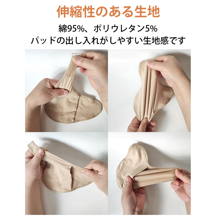 やわらかく伸びる生地で、パッドの出し入れがしやすく毎日のお手入れも簡単です。