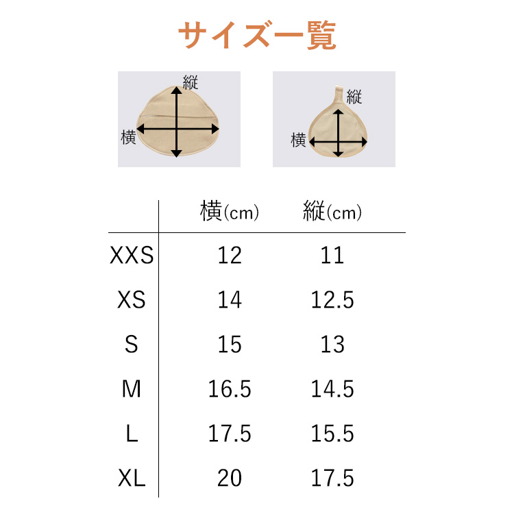 XXS〜XLまで豊富にそろえているため、パッドの大きさに合わせて選びやすい仕様です。