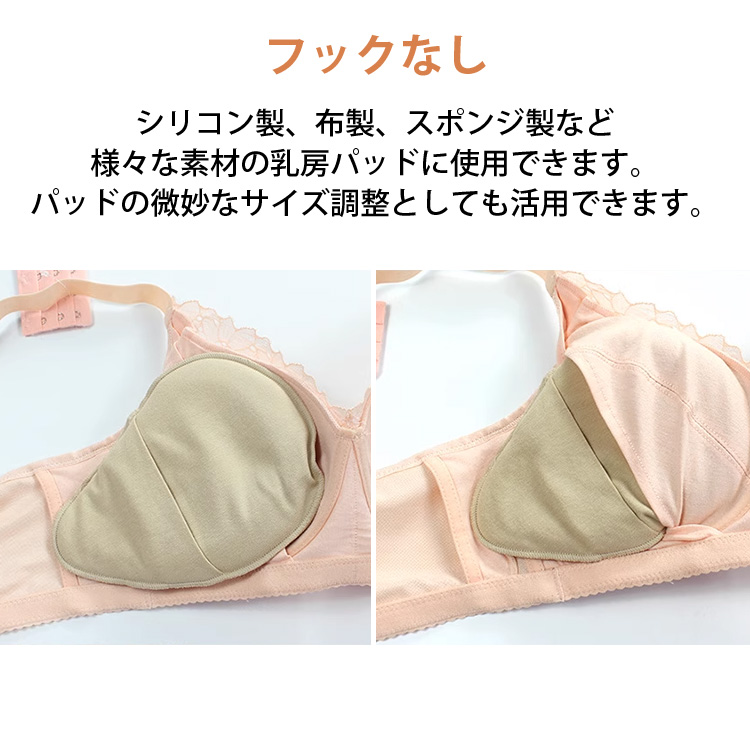 パッド用ポケットがない下着でも固定できる便利なタイプ。ブラストラップ(幅1.8〜2.5cm)に引っ掛けて使えるので、ズレにくく安定感があります。