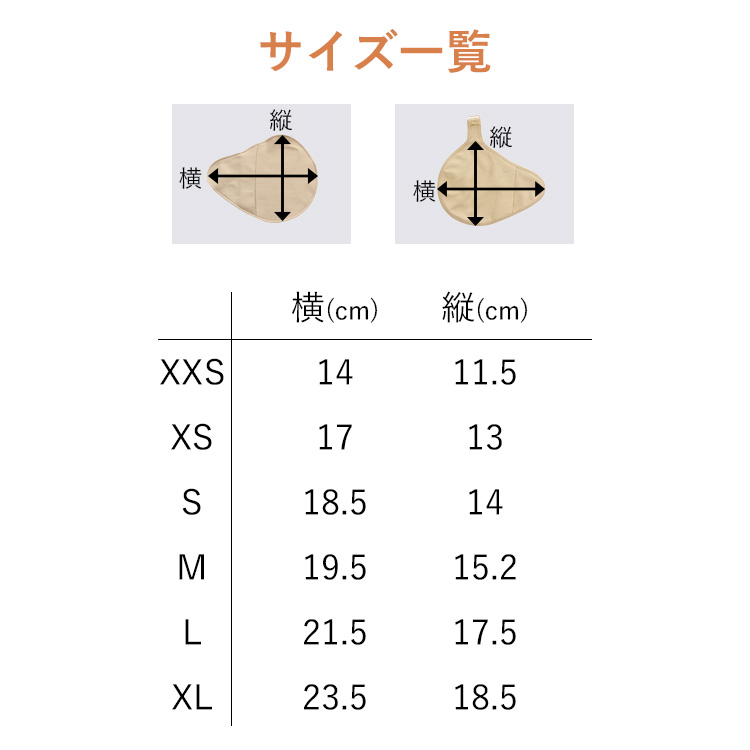 XXS〜XLまで豊富にそろえているため、パッドの大きさに合わせて選びやすい仕様です。