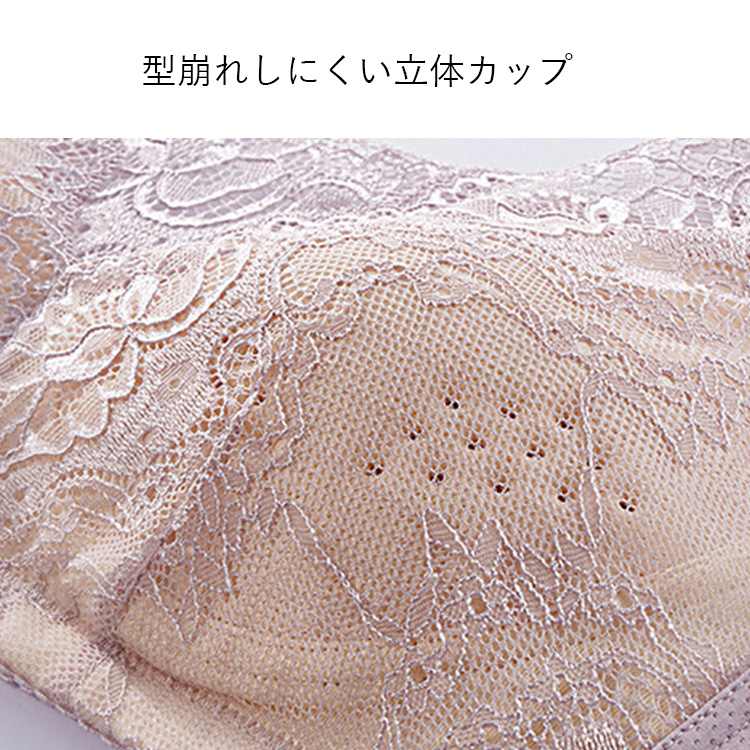 型崩れしにくい立体カップ。内側にはパッドを入れられるポケット付きで、お手持ちのパッドや別売の乳房パッドを入れることができます。