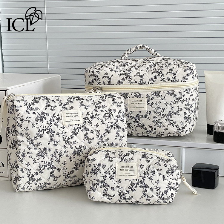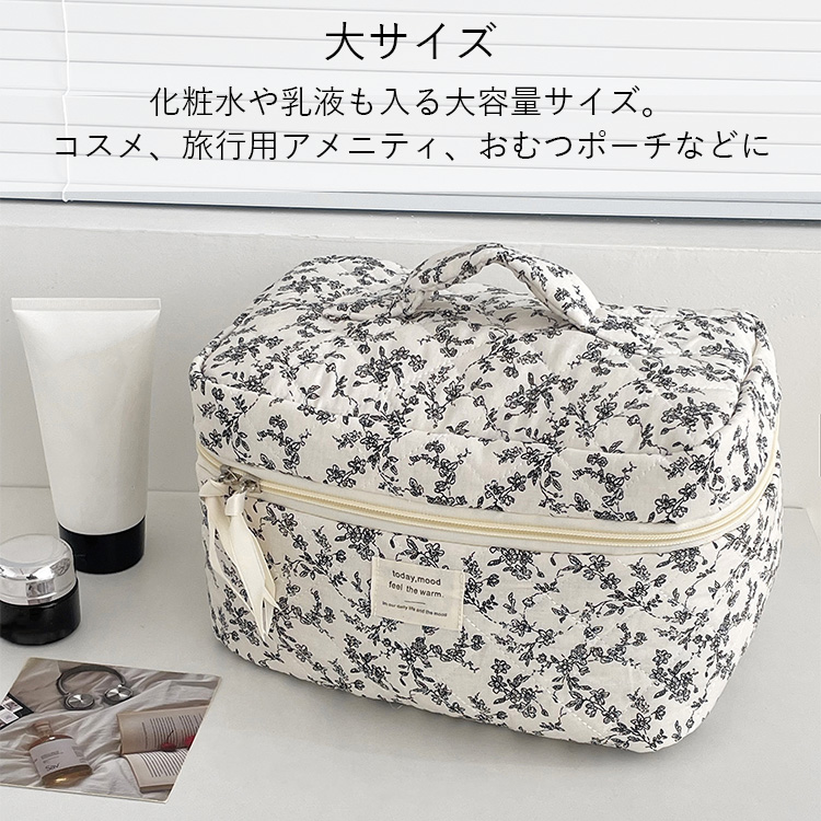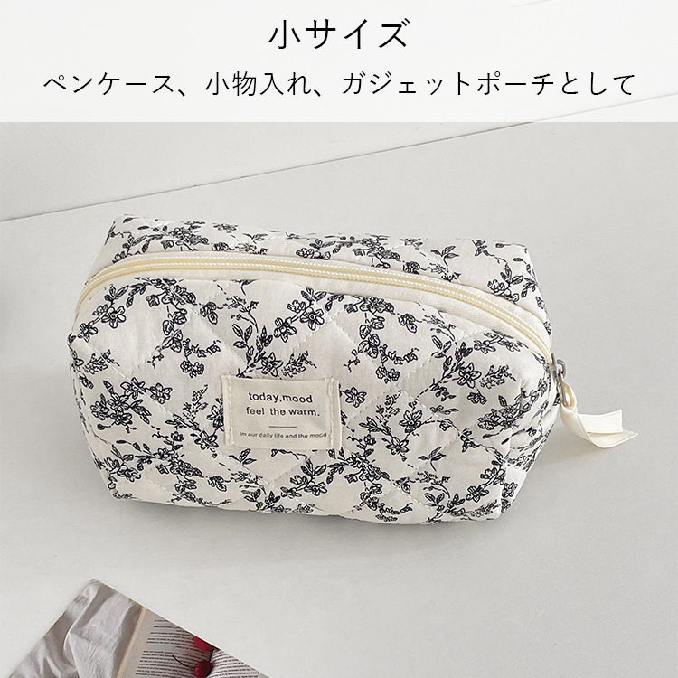 おしゃれな韓国雑貨のような、ふわふわキルティング素材と上品な小花柄が魅力のポーチ3点セット