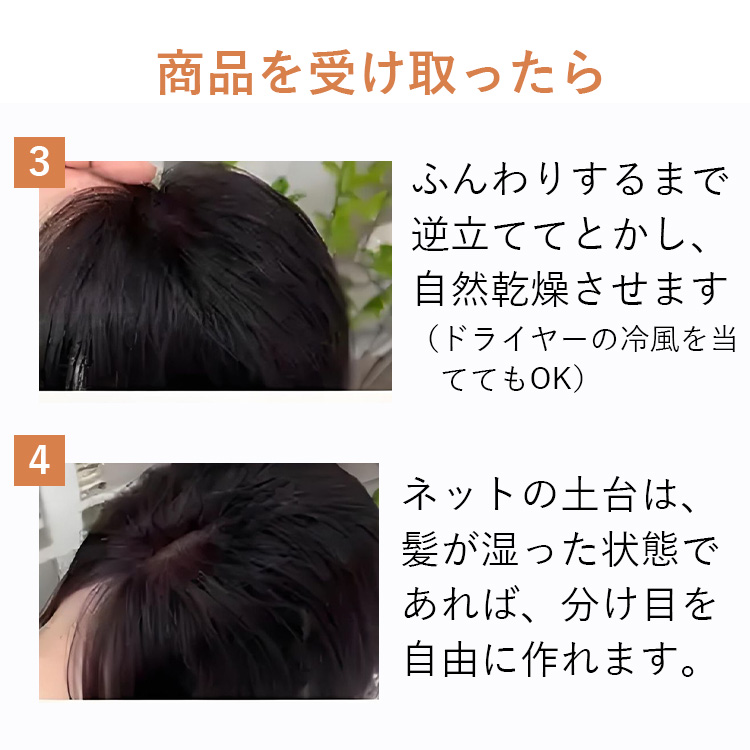 4. ネットの土台は、髪が湿った状態であれば、分け目を自由に作れます。